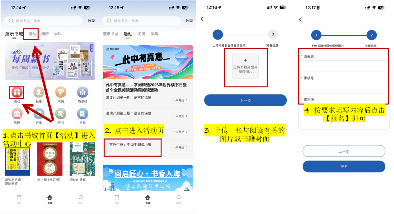 (2)活动期间每人可参与一次,提交时需包含 【原表达】 和 【翻译版】 两部分,翻译字数建议在50-200字,同时上传一张书籍封面图或与阅读有关的图片;