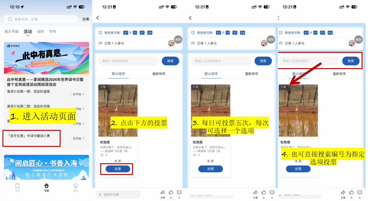 按照读者阅读天数、时长以及票数进行评奖。